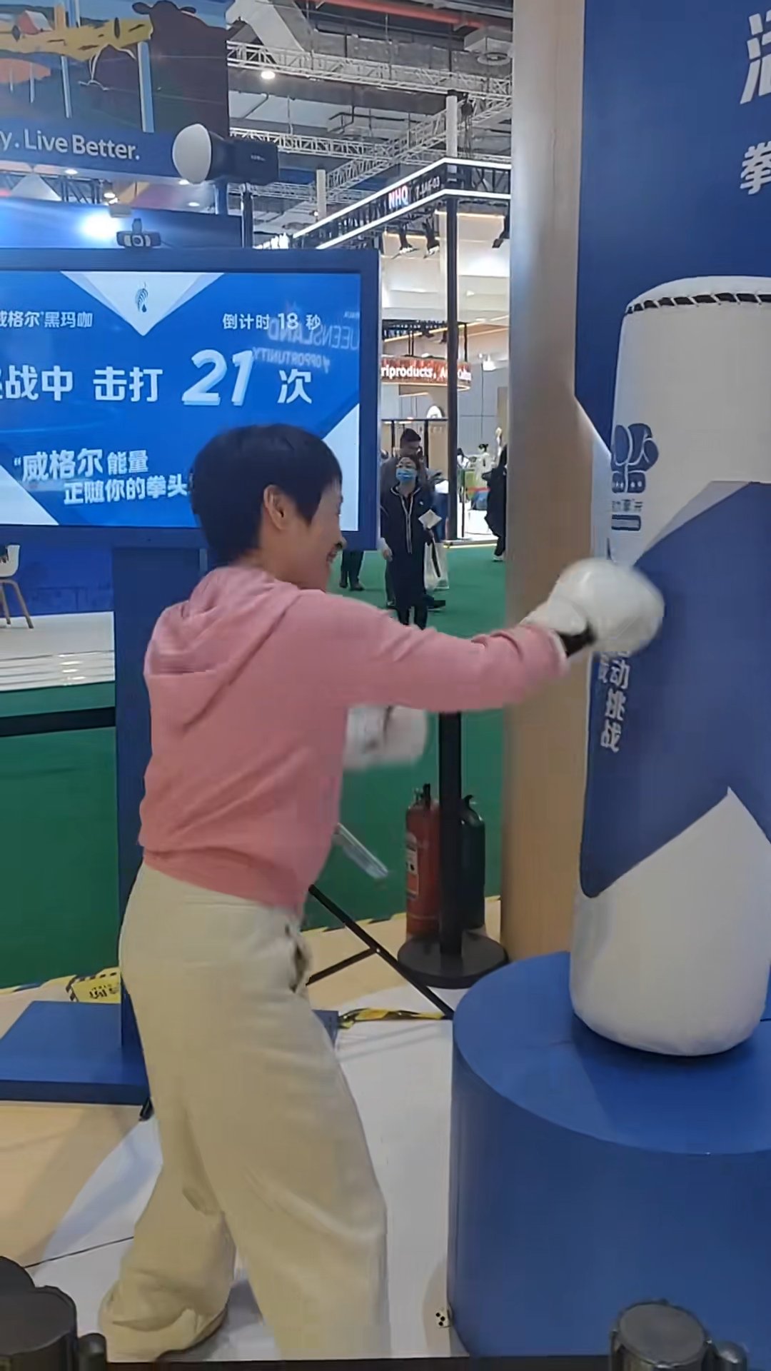 🥊拳击沙袋互动游戏📍【美乐家】威格尔 · 黑玛咖压片糖果 · 上海2025进博会– 通过压力传感器,检测击打次数。